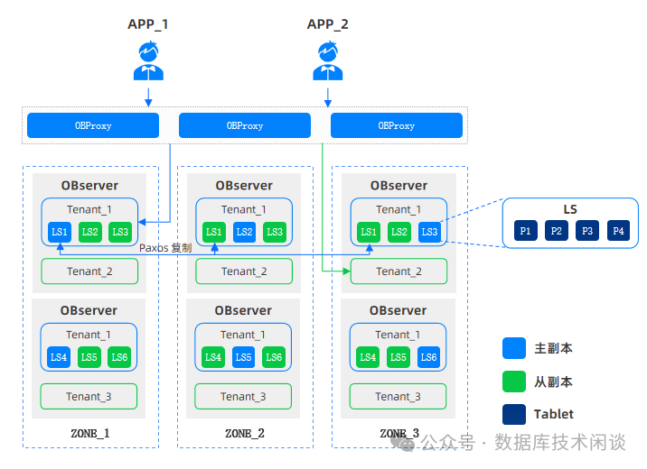 副本的粒度也代表了多副本同步的粒度,或者说数据同步的粒度。OBV4 版本以前可以针对租户、表设置 PRIMARY_ZONE