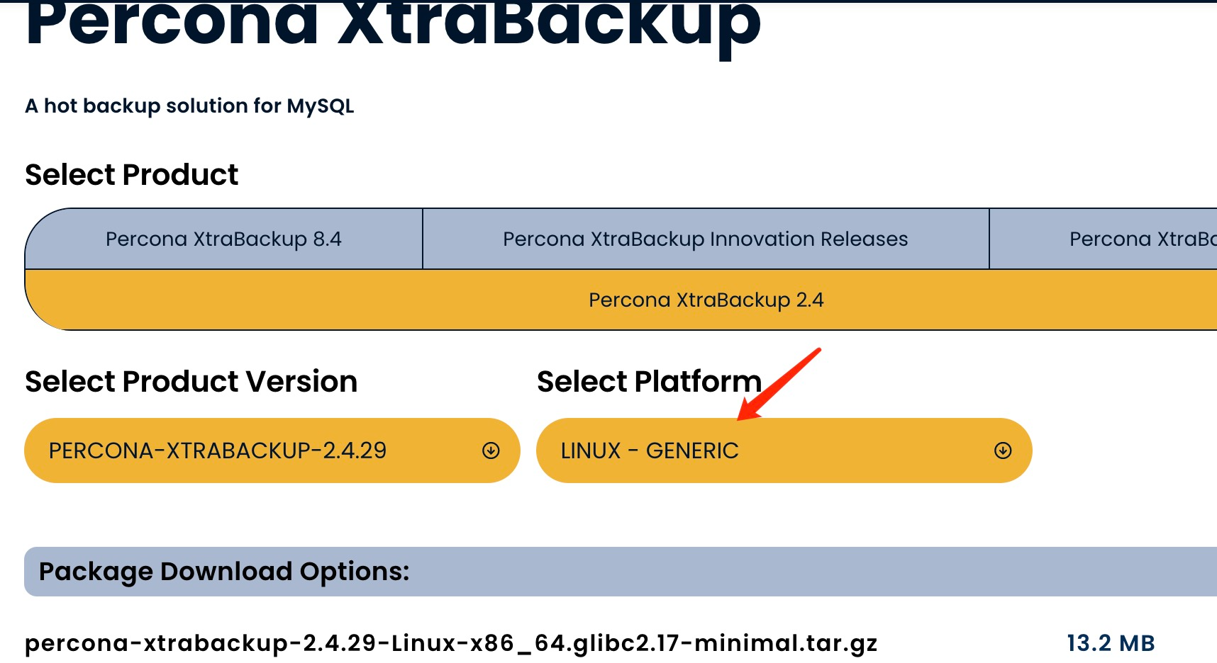 https://www.percona.com/downloads下载二进制安装包percona-xtrabackup-2.4.29-