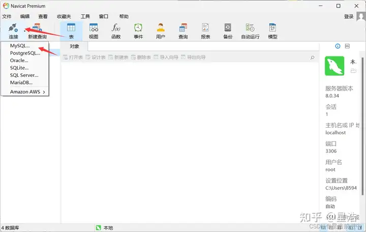 如果要新建数据库,可以右键对应的连接,然后点击新建数据库即可