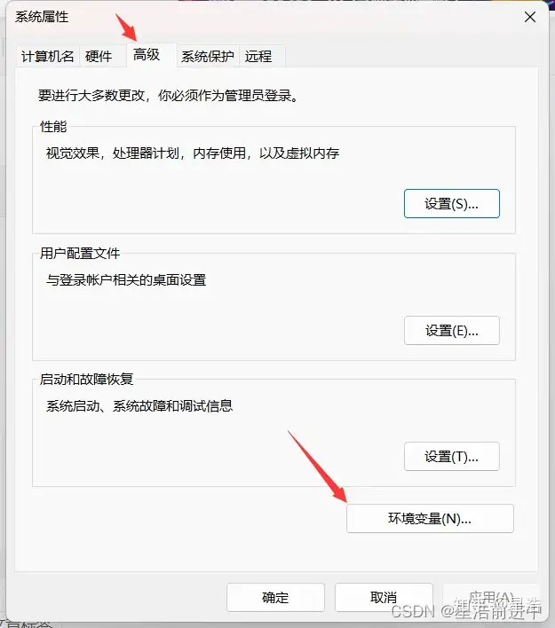 接着点击高级,进入环境变量界面