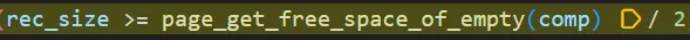 由函数page_zip_rec_needs_ext()判断是否需要溢出。判断方式是该记录长度是否大于空PAGE的可用空间。