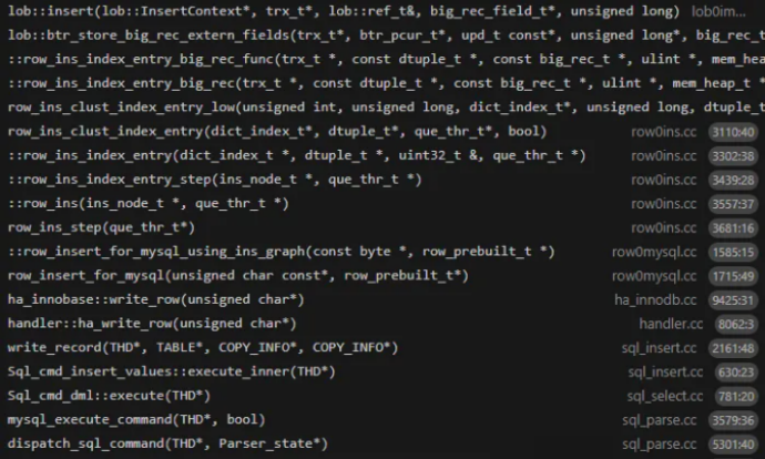 如果行长度大于8K,会将最长的列存放到新的PAGE,原位置使用20字节的指针代替。如果处理后,行长度依然大于8K,则选择当前最长的列进一步处理,不断循环。如果列长度无法进一步缩少,仍然大于8K,则抛出DB_TOO_BIG_RECORD错误,即“row size too large”。dtuple_convert_big_rec()函数上可以看到更多的执行细节。