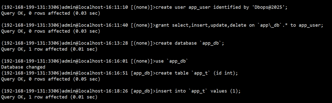 create user app_user identified by 'Dbops@2025';