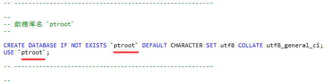 2、修改备份数据里的数据库名,也可以本地修改好上传覆盖,打开static/backup/sql/shujuk.sql,将数据库名修改成你的数据库名后导入数据库。PS:如果是虚拟主机的话,就把数据库创建这段删除掉,因为虚拟主机通常数据库是设定好的,而且也不允许创建,直接用空间商提供的就行了。