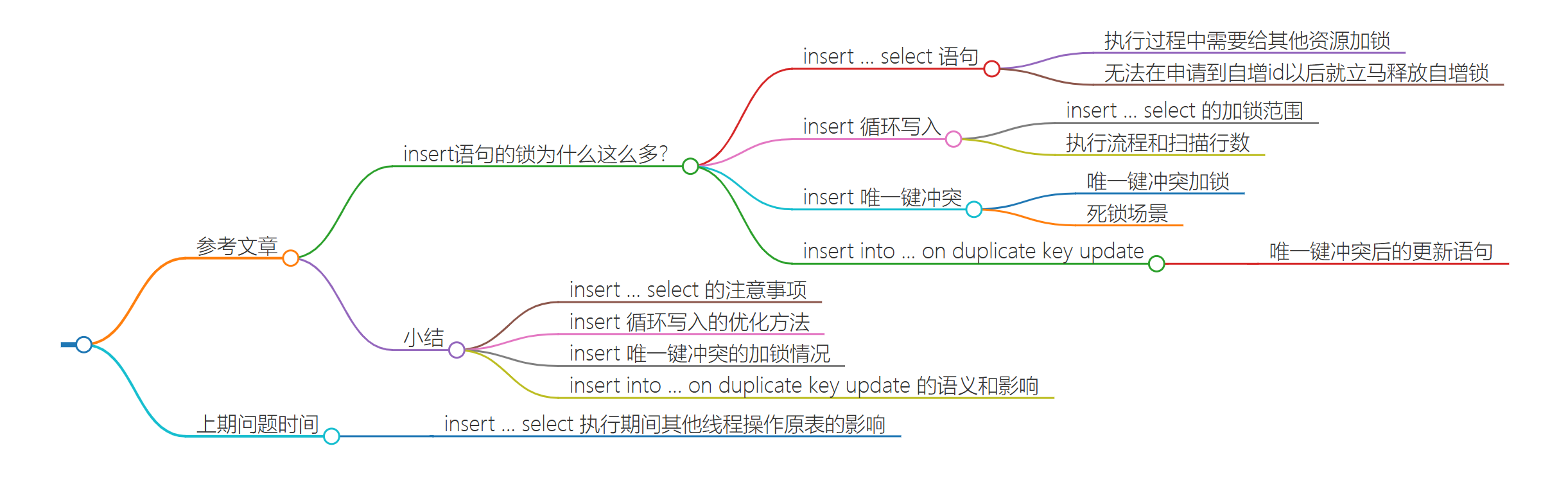 insert 语句如果出现唯一键冲突,会在冲突的唯一值上加共享的 next-key lock(S 锁)。因此,碰到由于唯一键约束导致报错后,要尽快提交或回滚事务,避免加锁时间过长。