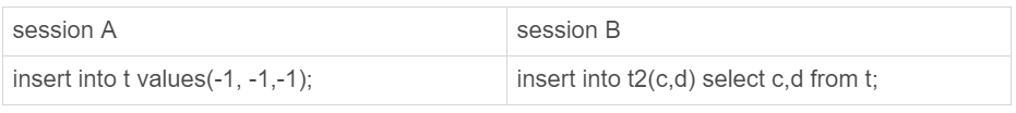 当然了,执行 insert … select 的时候,对目标表也不是锁全表,而是只锁住需要访问的资源。如果现在有这么一个需求:要往表 t2 中插入一行数据,这一行的 c 值是表 t 中 c 值的最大值加 1。