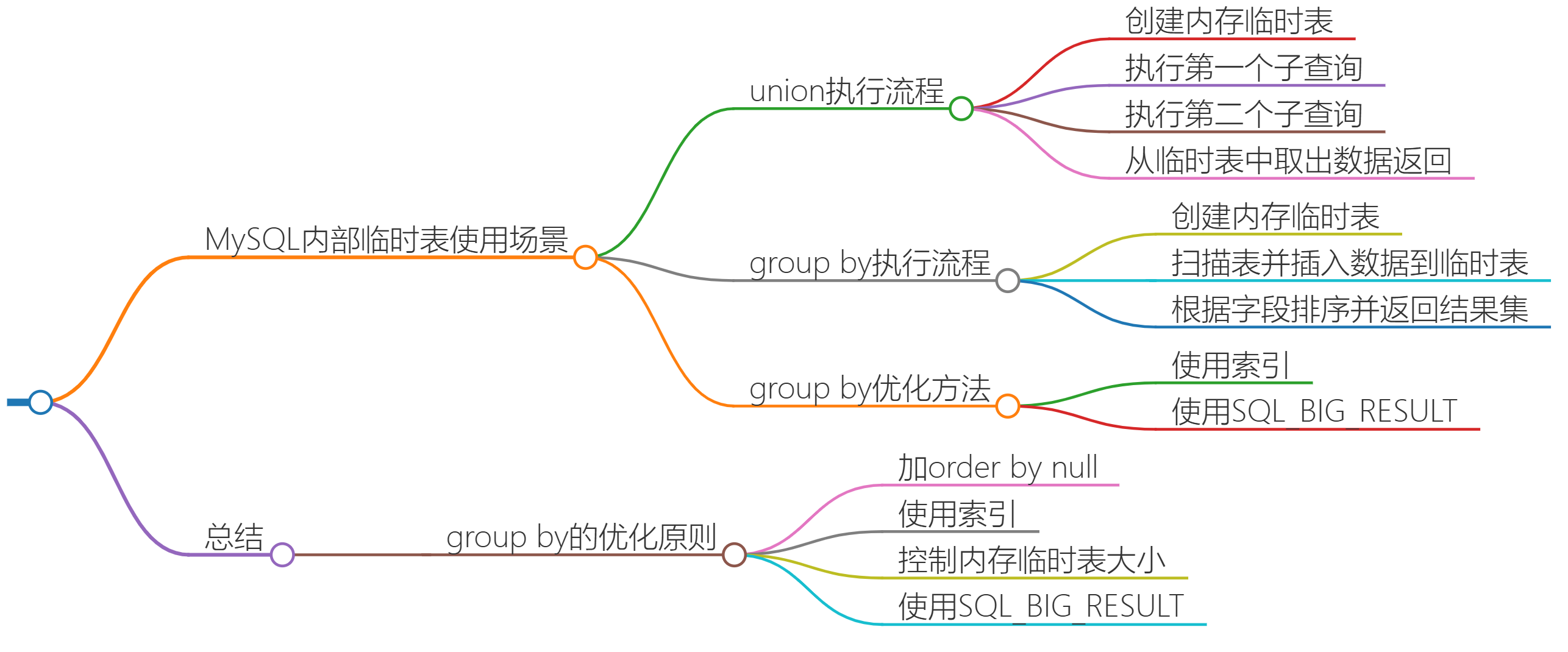 基于上面的 union、union all 和 group by 语句的执行过程的分析,我们来回答文章开头的问题:MySQL 什么时候会使用内部临时表?