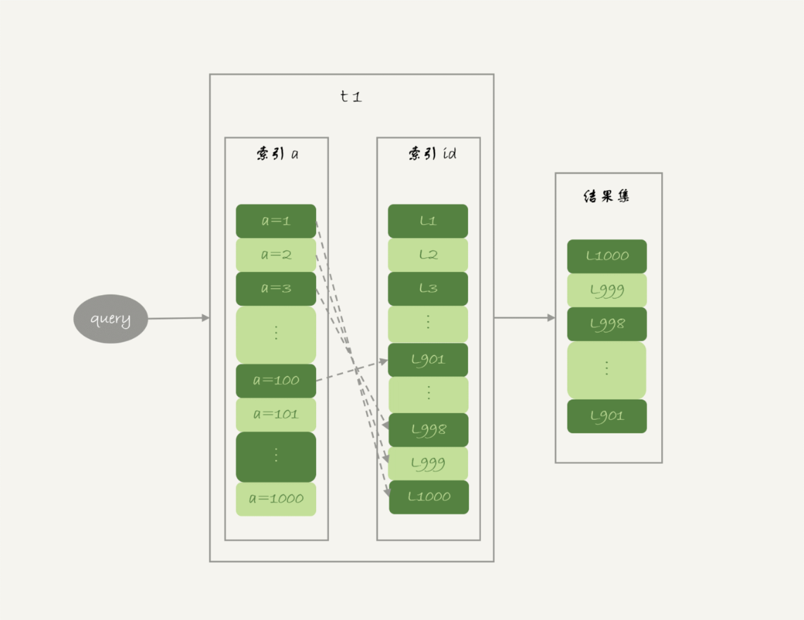 如果随着 a 的值递增顺序查询的话,id 的值就变成随机的,那么就会出现随机访问,性能相对较差。虽然“按行查”这个机制不能改,但是调整查询的顺序,还是能够加速的。