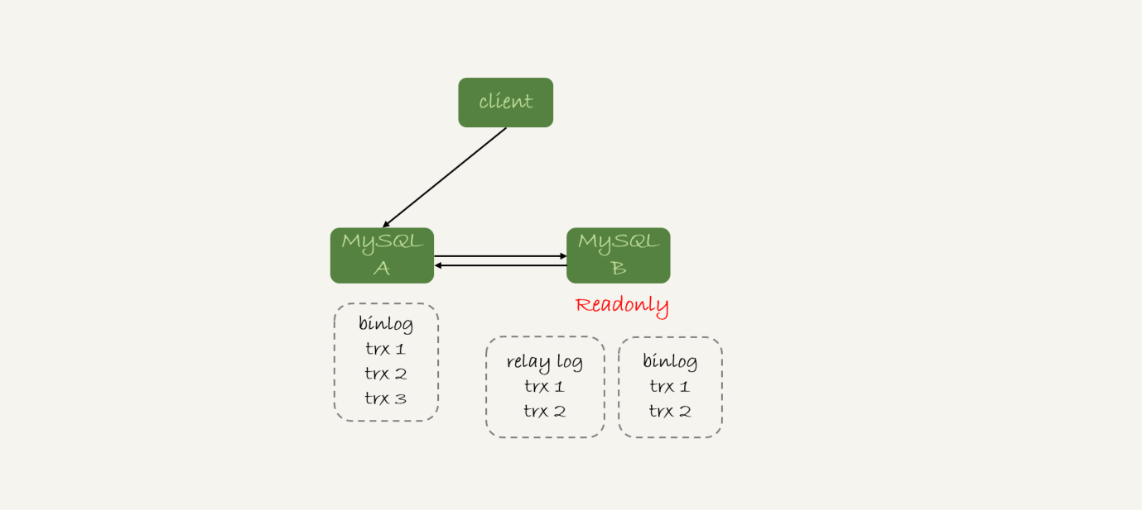 但是,从 binlog 在主备之间状态的分析中,不难看出还有一部分日志,处于客户端已经收到提交确认,而备库还没收到日志的状态。