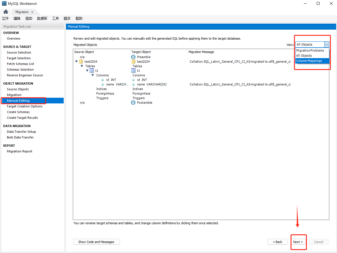 查看和编辑迁移对象,可以在它们被应用到目标数据库之前进行编辑