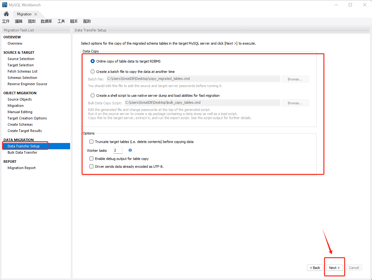 Create a batch file to copy the data at another time:数据也可以转储到一个稍后可以执行的文件中,或者用作备份。此脚本使用MySQL连接来传输数据。