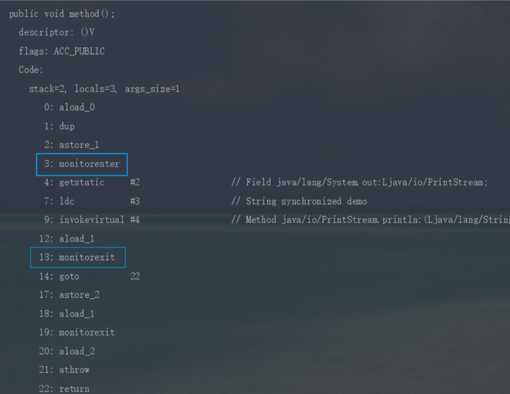 修饰代码块:JVM采用monitorenter、monitorexit两个指令,一个开始一个结束