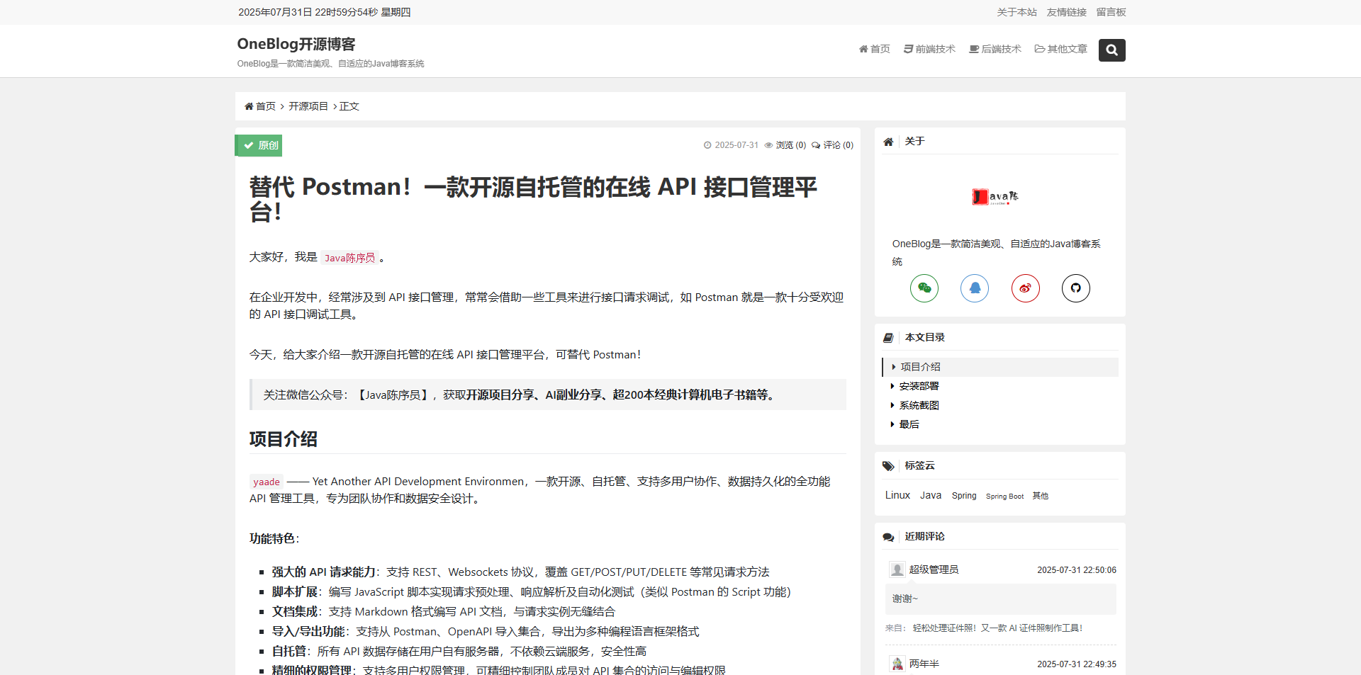 如果你正在寻找一款功能丰富、易于使用的 Java 博客系统,OneBlog