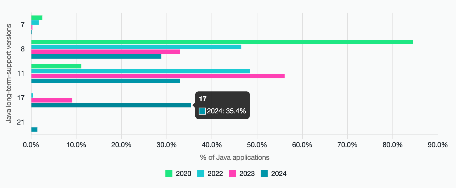 在我看来主要是因为业务和生态变了,尤其是这几年 AI 发展,很多老项目都要接入 AI、新项目直接面向 AI 开发,为了追求开发效率,我们要用 AI 开发框架(比如 Spring AI、LangChain4j),而这些框架要求的版本几乎都是 >= 17, 所以我们团队自己的业务也从 Java 8 迁到 Java 21 了。