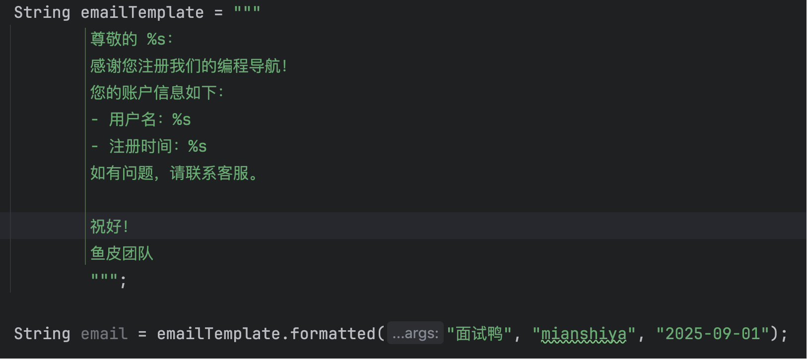 List<String> names = Arrays.asList("鱼皮", "编程导航", "面试鸭");