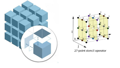 HPCG 实现了预条件共轭梯度法 (Preconditioned Conjugate Gradient) 求解三维泊松方程的迭代过程,包含: