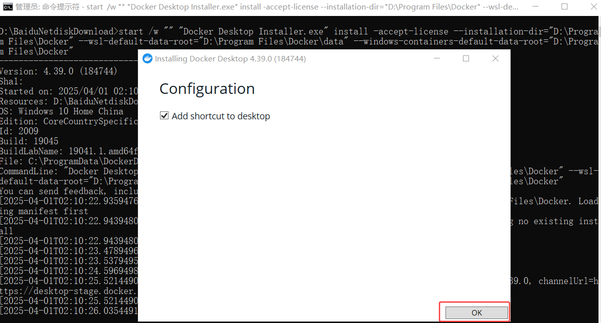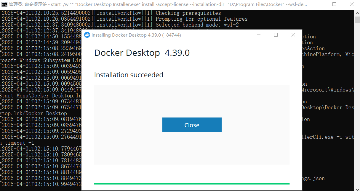 start /w "" "Docker Desktop Installer.exe" install -accept-license --installation-dir="D:\Program Files\Docker" --wsl-default-data-root="D:\Program Files\Docker\data" --windows-containers-default-data-root="D:\Program Files\Docker"