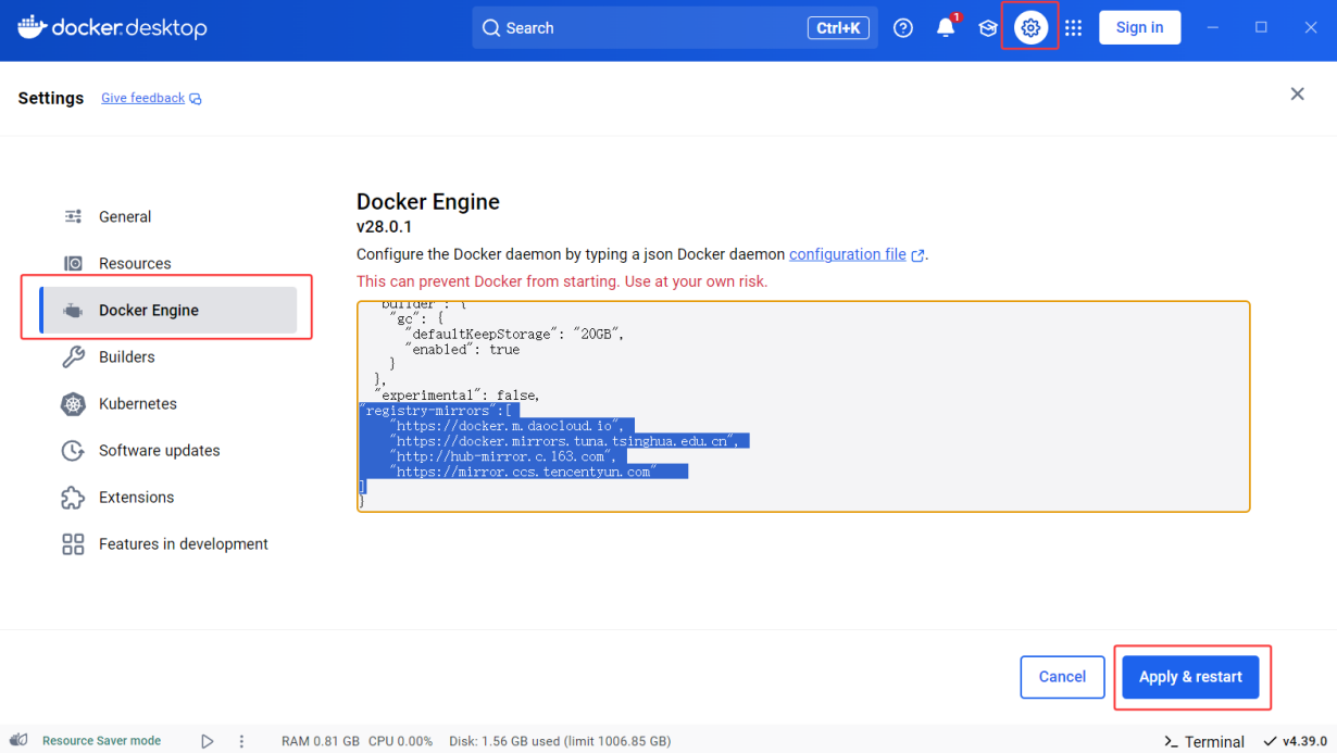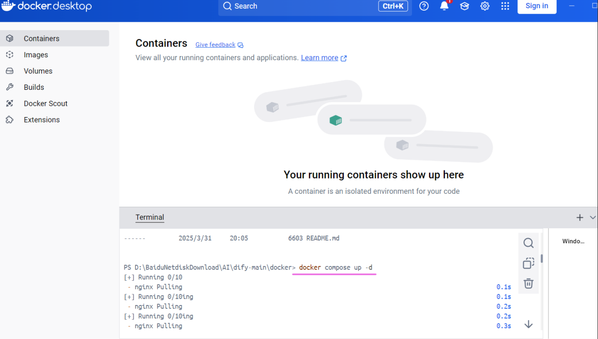 由于网络问题,在拉取镜像时,会出现timeout报错;导致后续dify安装不成功。可以在docker上配置下国内镜像源,解决这个问题。