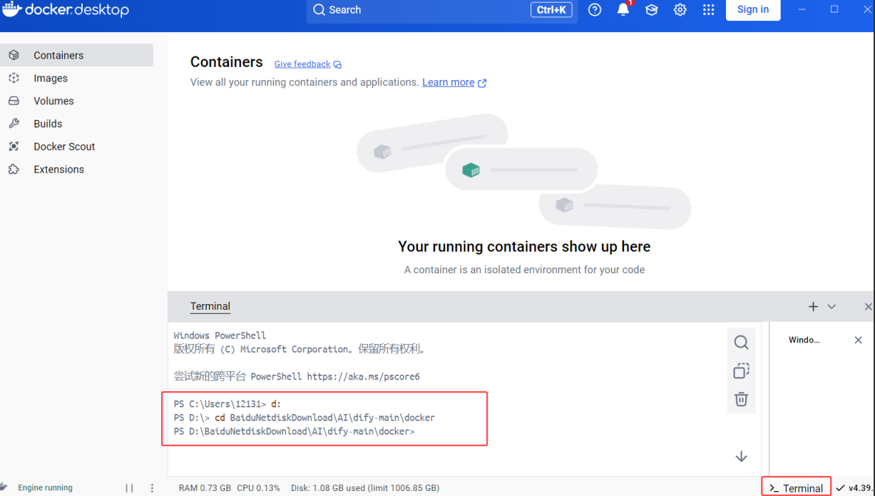 注意:运行代码之前,提前创建好对应文件夹D:\Program Files\Docker、D:\Program Files\Docker\data,可能会报错