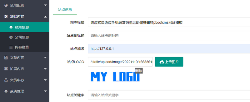7、如果没有显示404的页面,但是前台的页面是乱的,样式没有加载,那是因为我们的网站跟网址设置的不对,一般网站都是在本地测试后传到服务器的,我们找到站点信息,将站点域名改为自己当前网站的域名即可。如下图所示,将http://127.0.0.1改为http://www.youwebiste.com