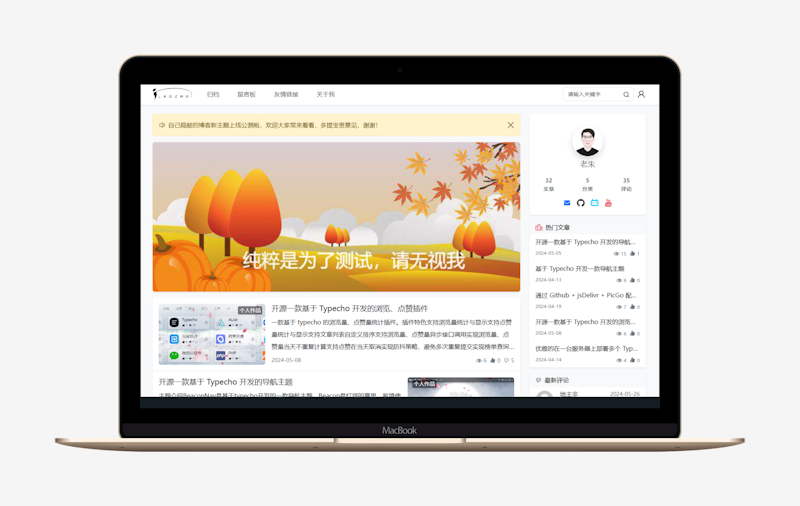 支持公告、轮播图、热门文章、最新评论、分类、标签云等可选组件;