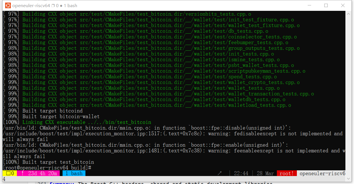 BitC++oin项目源码是用C++写的,我对C++以及它的编译工具又比较熟悉,这次我尝试了在openEuler RISC-V 24.09上面部署Bitcoin。网上编译Bitcoin源码的很多都是以前旧版的,旧版编译是用automake之类的工具,但是在最新版只需要用cmake就行,两者的部署方式不相同,我分别记录一下。