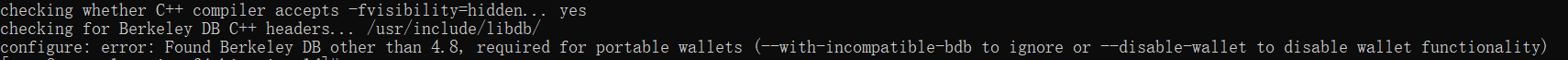 因此在 configure 阶段,我选择加了 --disable-wallet 这个选项,禁用掉钱包的功能。