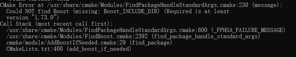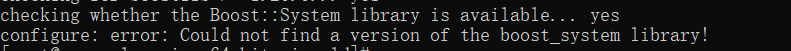继续往下走,就比较棘手了,推断跟Boost有关,我在Ubuntu上面也遇到了,不过下载了libboost-system-dev就解决了