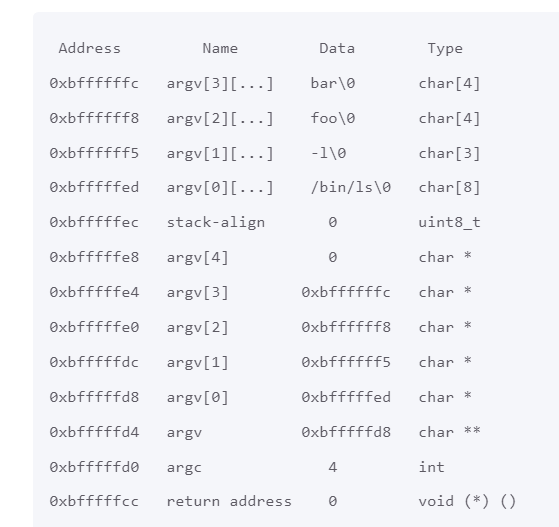 以下是参数在栈中的放置方式,注意x86由于call的时候esp必须与16字节对 齐,因此最后将argc传入后需要进行对齐。