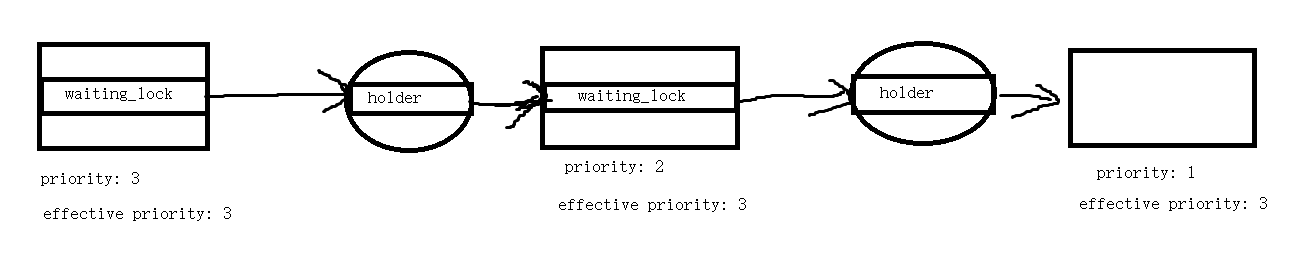 而unlock()时捐赠情况可能会变,如H(high)和M(mid)分别在等L(low)的lock1和 lock2,则L的优先级是high,当lock1释放时,H不再捐赠L,而变成M在捐赠L, 即L的优先级要变为mid. 这可以通过在tcb中添加一个lock_list链表,表示所有持有 的锁,当释放一把锁时遍历其他锁获得最高的优先级来捐赠。