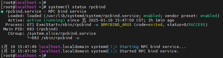 systemctl status rpcbind | 查看 rpcbind 服务运行状态 |