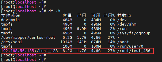 如上图所示,(本例)在客户端(使用共享文件或目录的一方)的“/root”目录下,创建了一个目录,用于挂载服务端的共享目录。