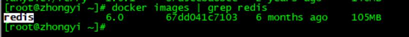 [root@zhongyi ~]# docker pull redis:6.0 #查看镜像下载成功,如下图: