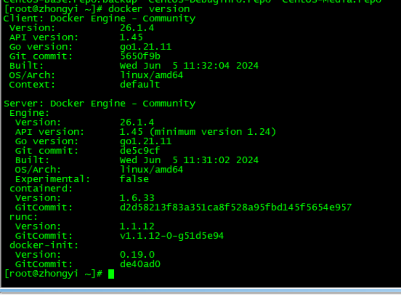 [root@zhongyi ~]# yum install -y docker-ce #安装docker相关
