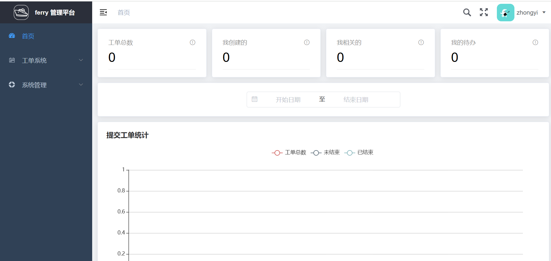 8.登录访问工单系统页面(http://IP:8002;系统默认用户名admin、密码123456)