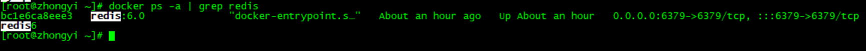 [root@zhongyi ~]# docker run -d --name=redis6 -p6379:6379 redis:6.0 #启动容器