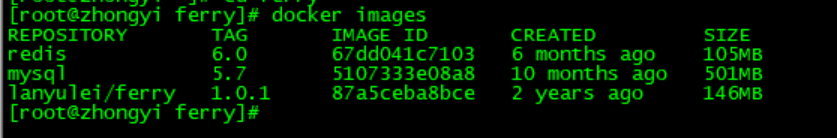 [root@zhongyi ferry]# docker images #查看镜像下载成功,如下图: