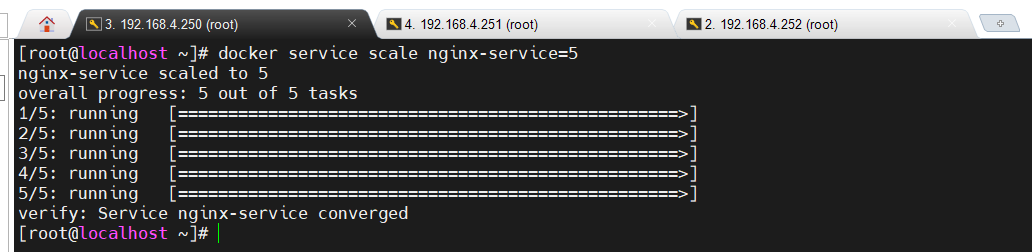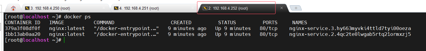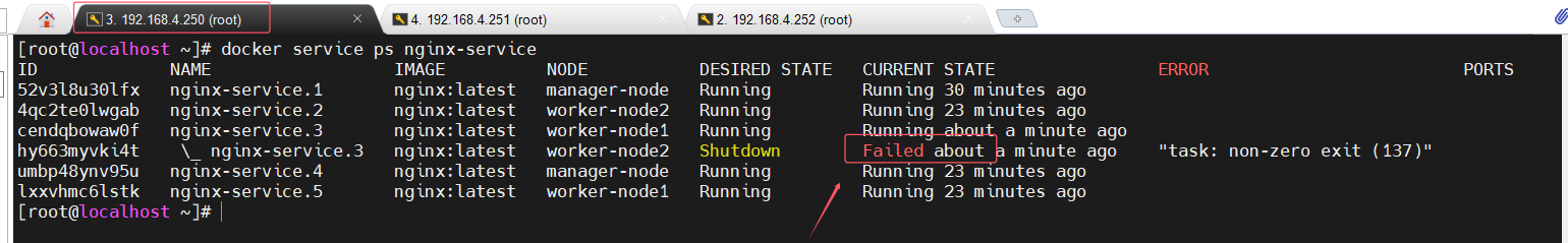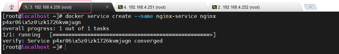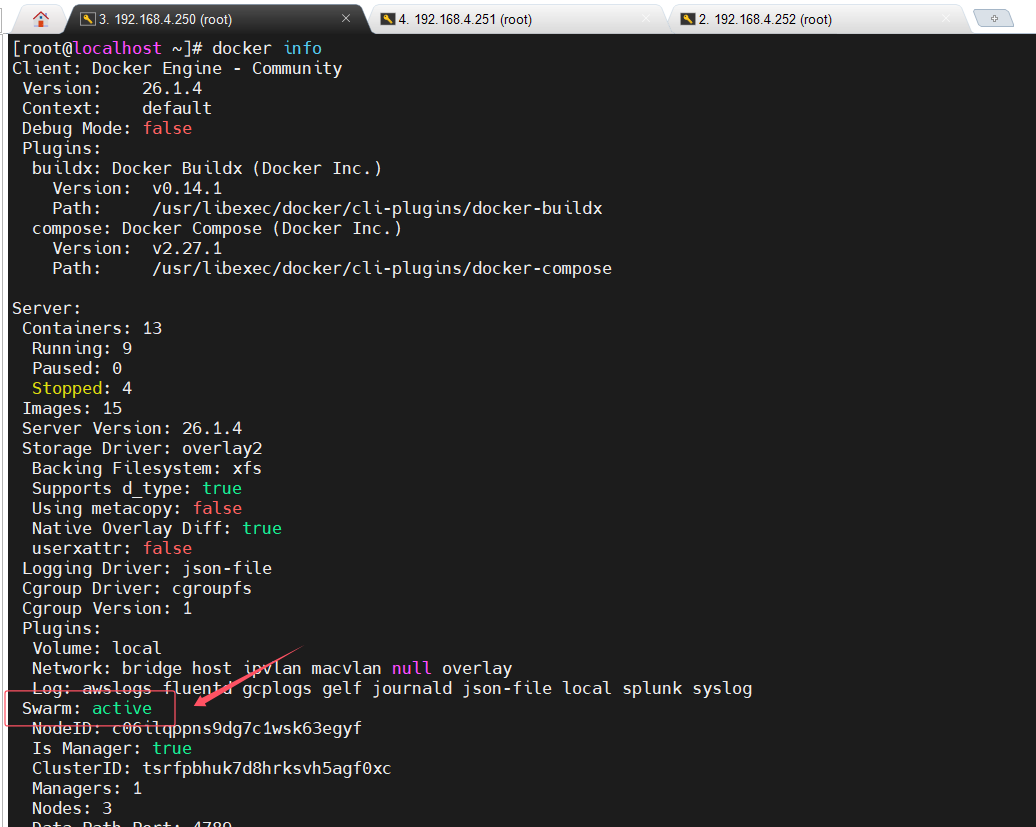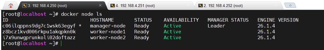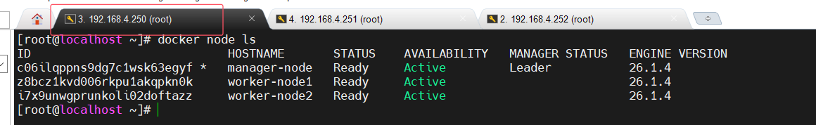 其中 192.168.4.250 作为 manager 节点,其它两台作为 worker 节点。