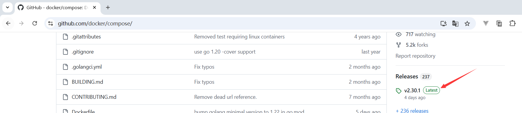 首先下载 docker-compose 到本地,下载地址:https://github.com/docker/compose/