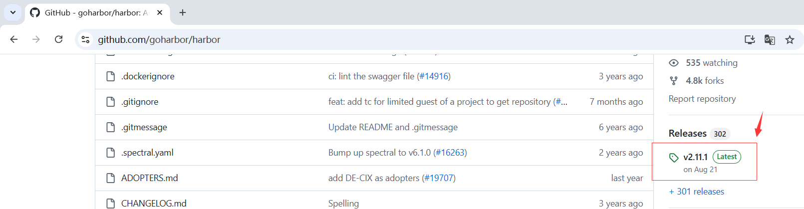 通过 GitHub下载离线安装包,下载地址:https://github.com/goharbor/harbor