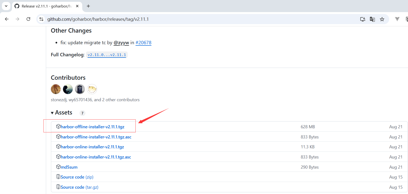下载链接:https://github.com/goharbor/harbor/releases/download/v2.11.1/harbor-offline-installer-v2.11.1.tgz