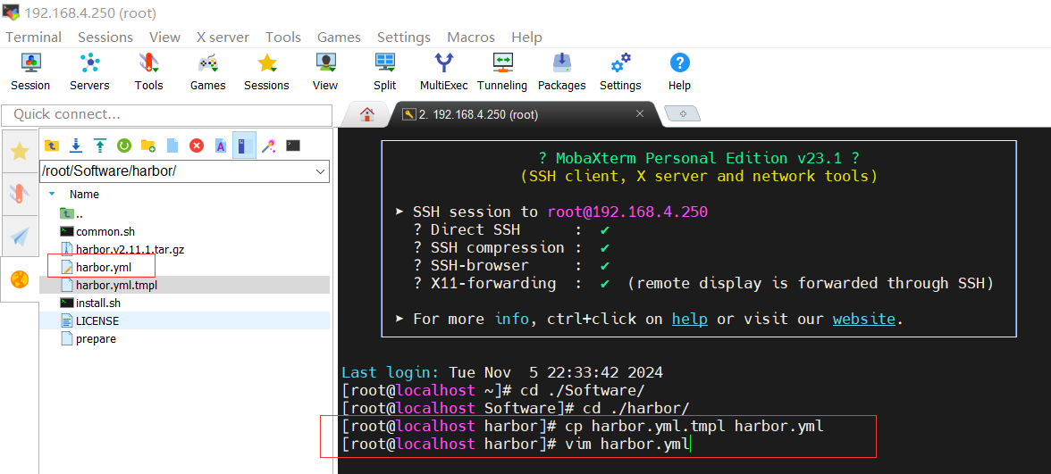进入解压后的文件夹,复制 harbor.yml.tmpl 文件,并重命名为 harbor.yml ,如下所示: