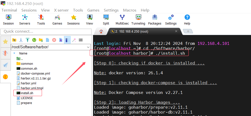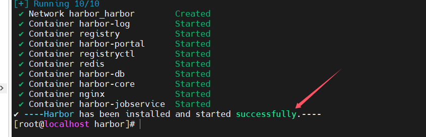 配置文件修改成功后,执行 install.sh 脚本进行安装 Harbor