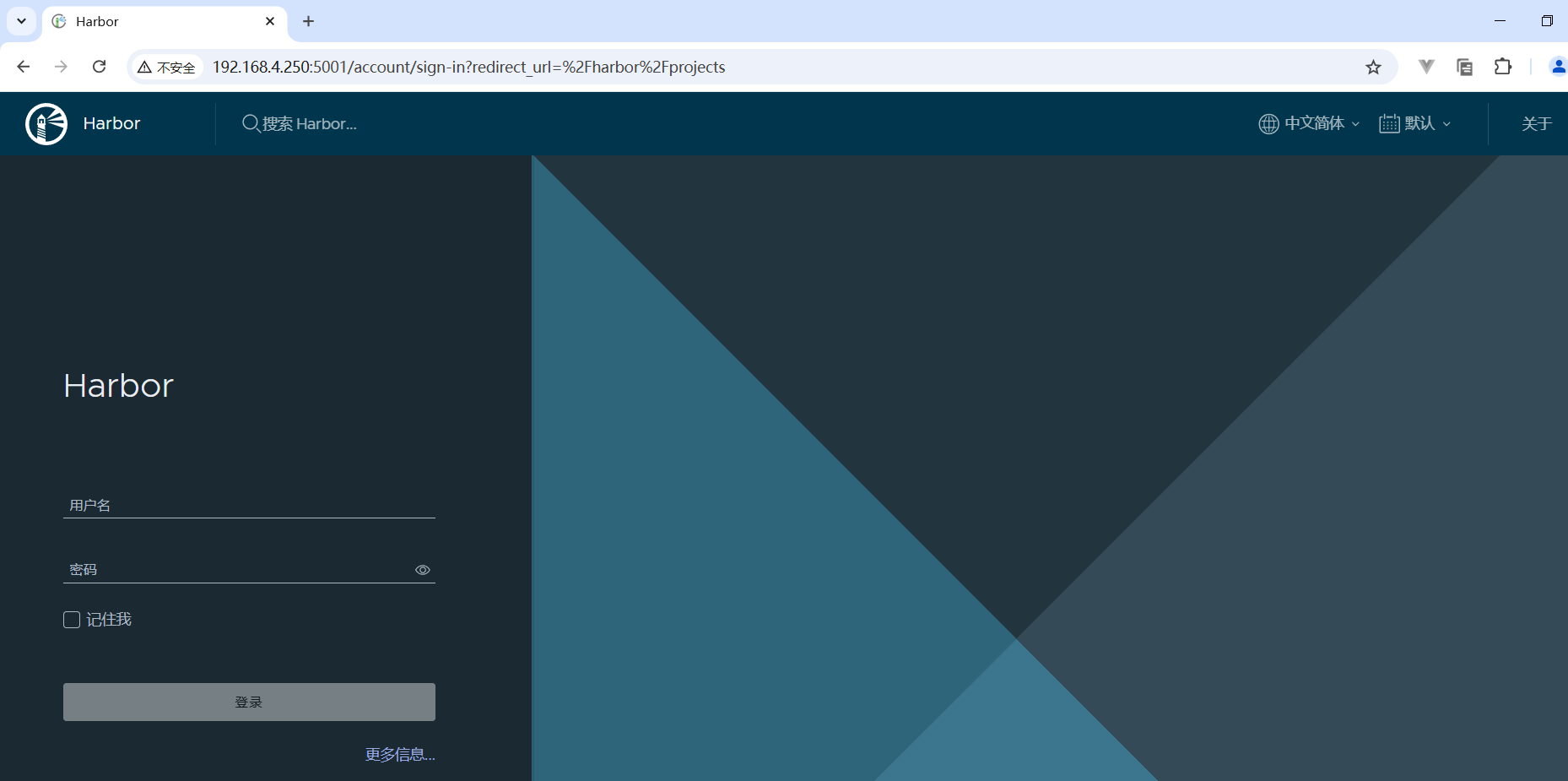 访问成功,由于 Harbor 是通过 Docker 管理的,所以启动非常方便。如果首页访问成功说明 Docker 私有仓库已经部署成功了。