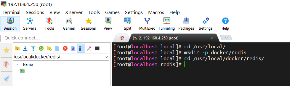 // 进入目录/usr/local cd /usr/local/ // 创建多级目录(如果上级目录不存在,会自动创建) mkdir -p docker/redis // 进入目录/usr/local/docker/redis cd /usr/local/docker/redis/