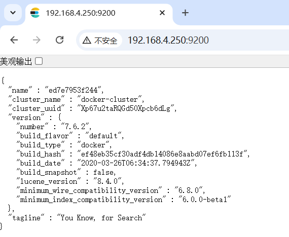 通过浏览器访问:http://192.168.4.250:9200/