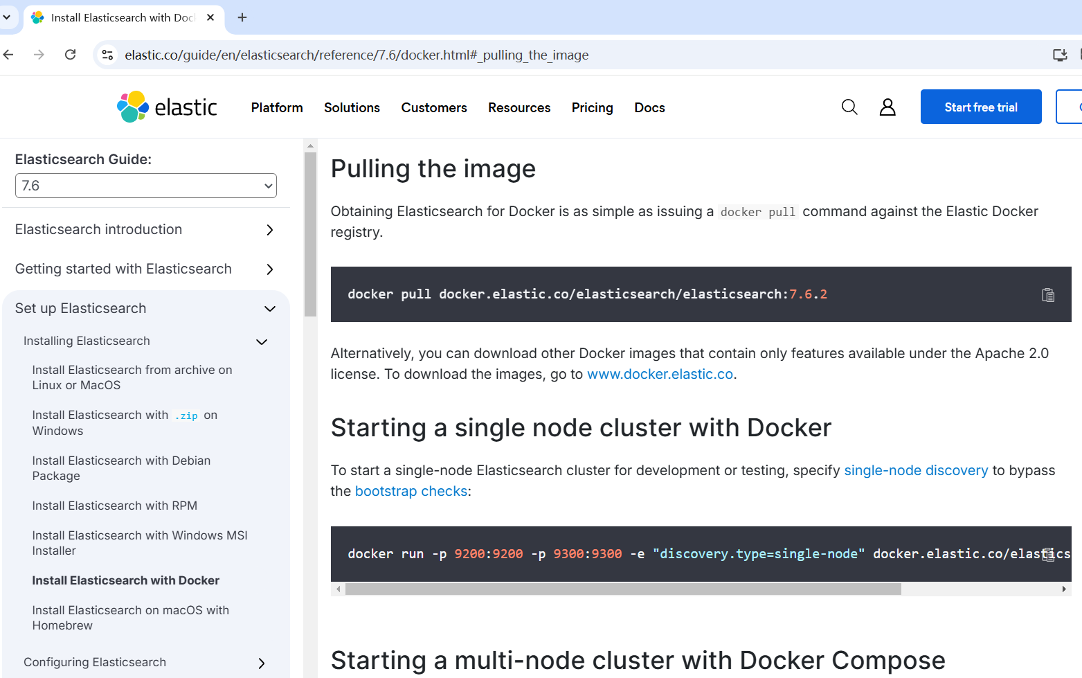 Docker安装Elasticsearch可直接参考官方文档:https://www.elastic.co/guide/en/elasticsearch/reference/7.6/docker.HTML#_pulling_the_image