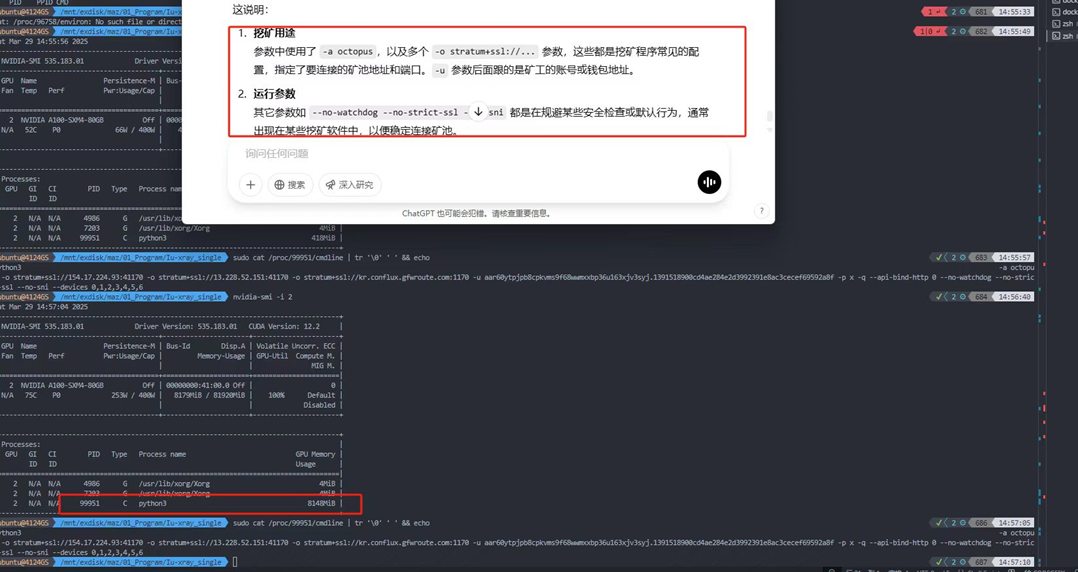 下有个Python3的子进程,也即我们最初发现的挖矿进程。