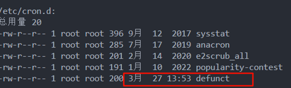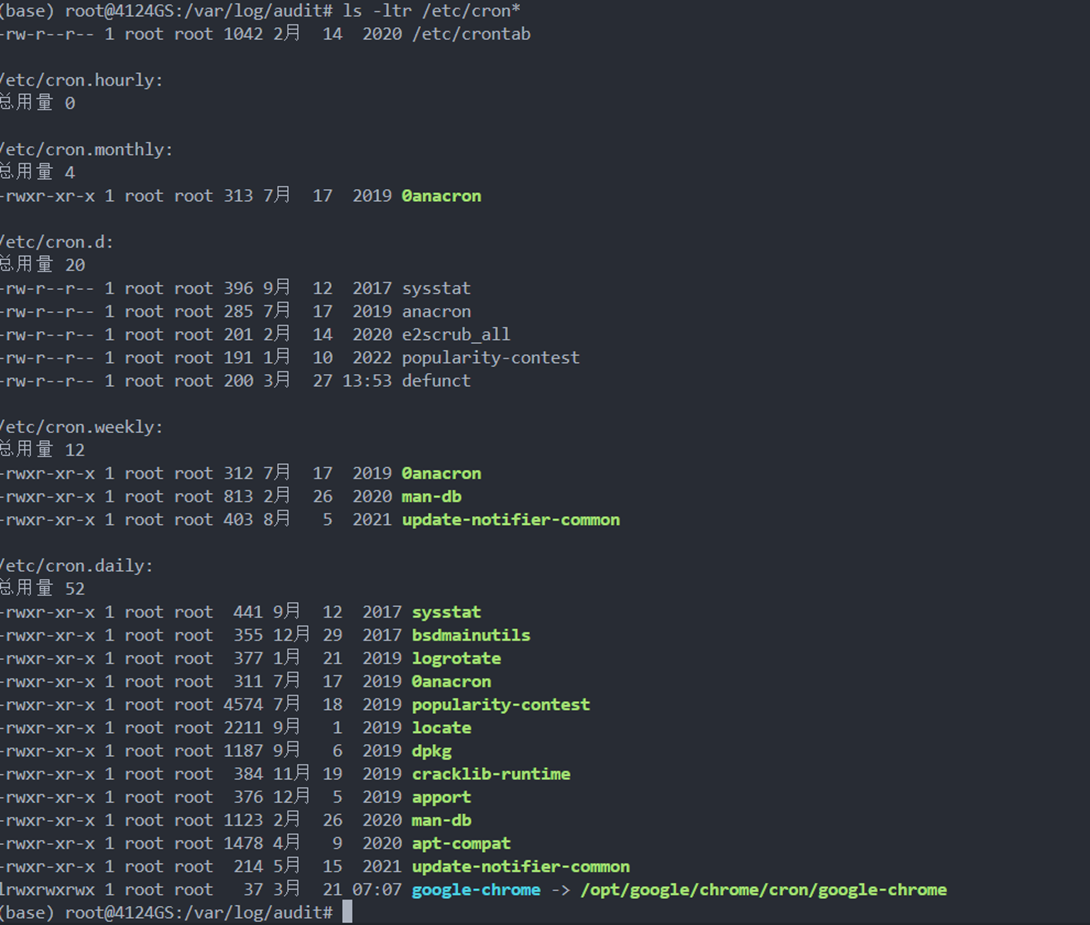 再去/etc/下的各种cron相关目录下查看相关任务:ls -ltr /etc/cron*
