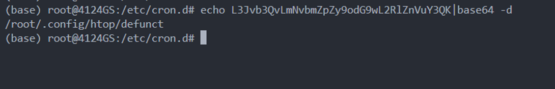 执行其中部分内容echo L3Jvb3QvLmNvbmZpZy9odG9wL2RlZnVuY3QK|base64 -d